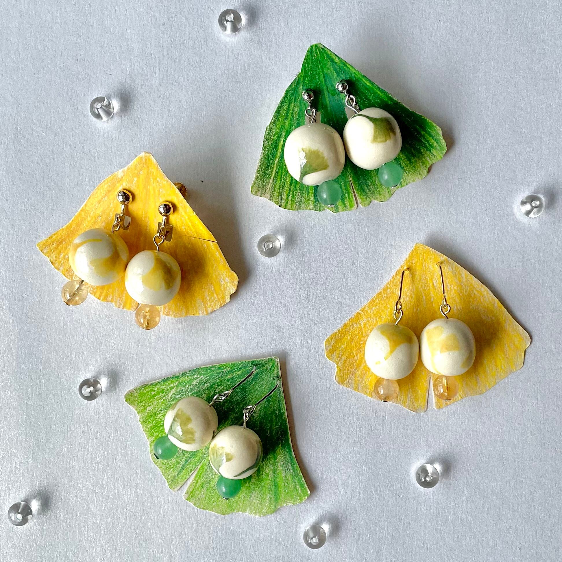素材:低温陶土、釉下彩、透明釉薬、銀めっき/金めっき真鍮、アベンチュリン/シトリン
