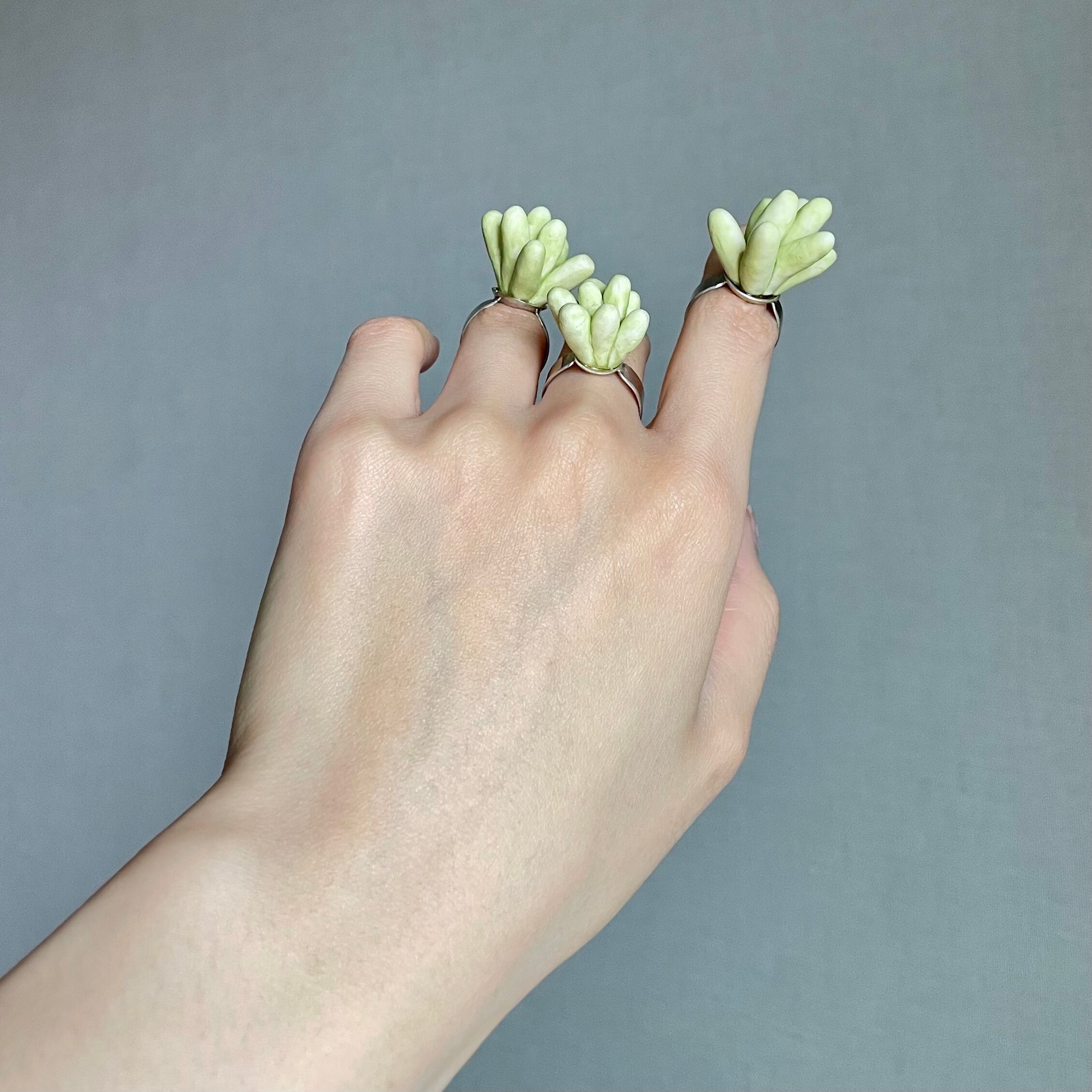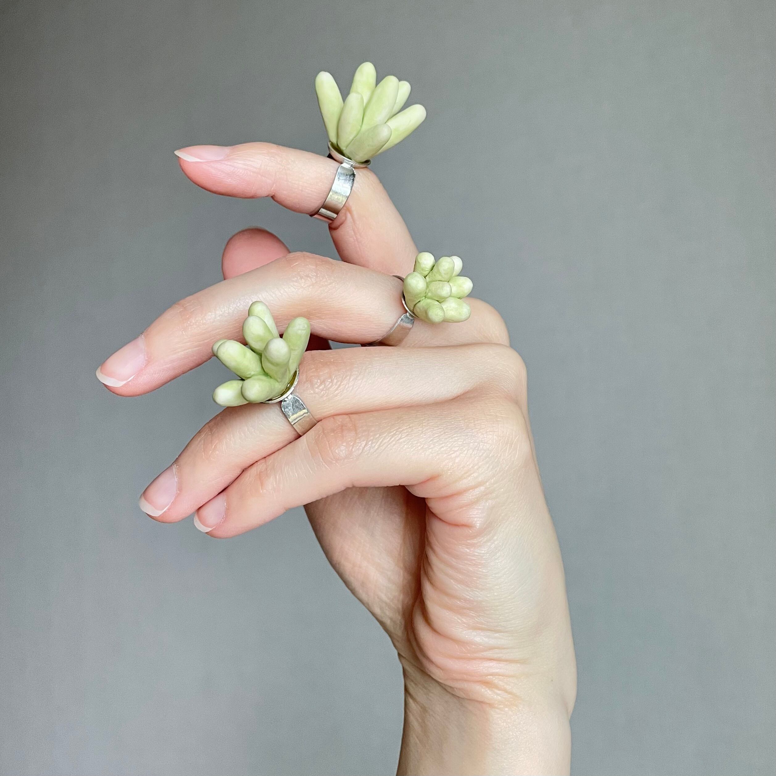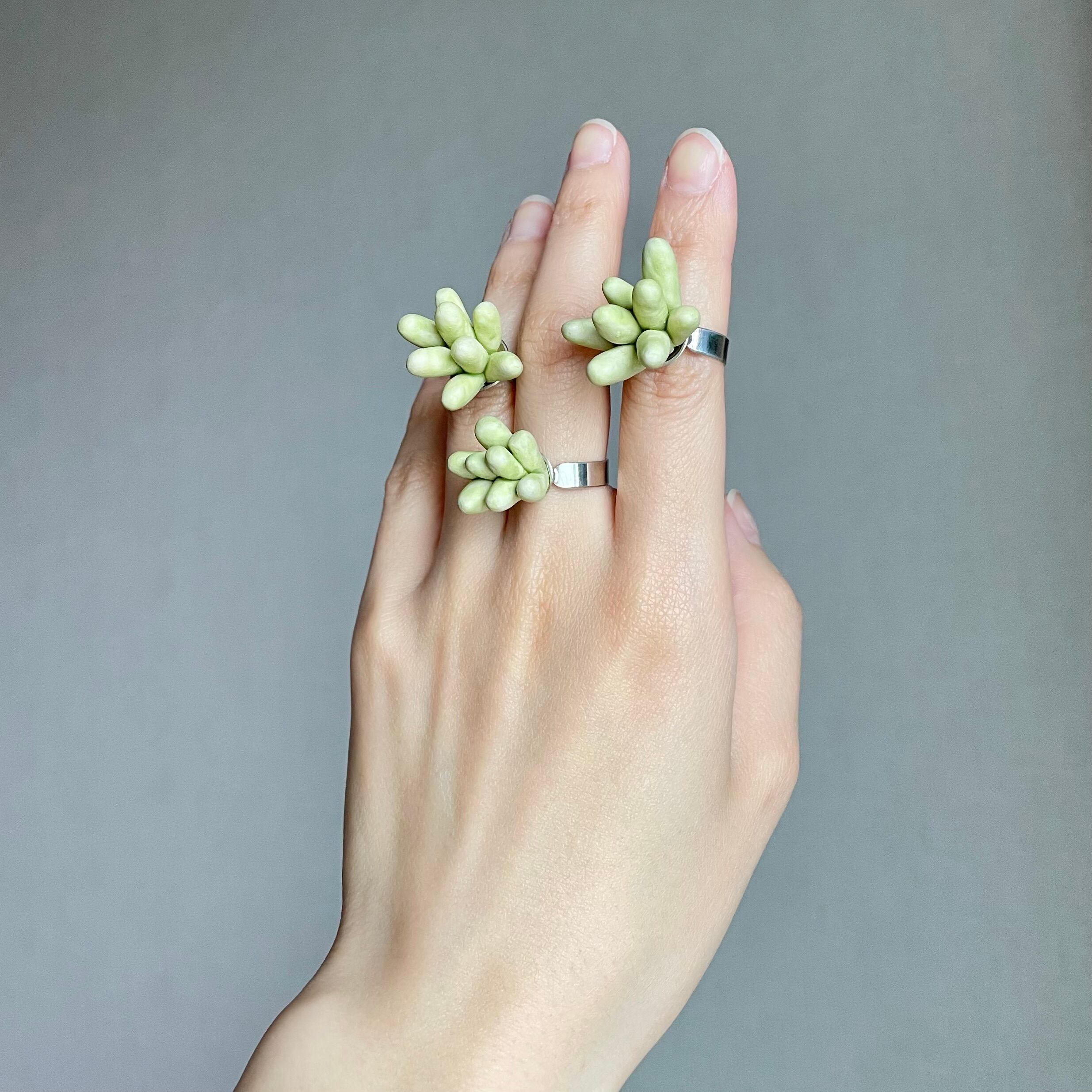 透明釉薬なしバージョンの大きいの多肉植物シルバー指輪。